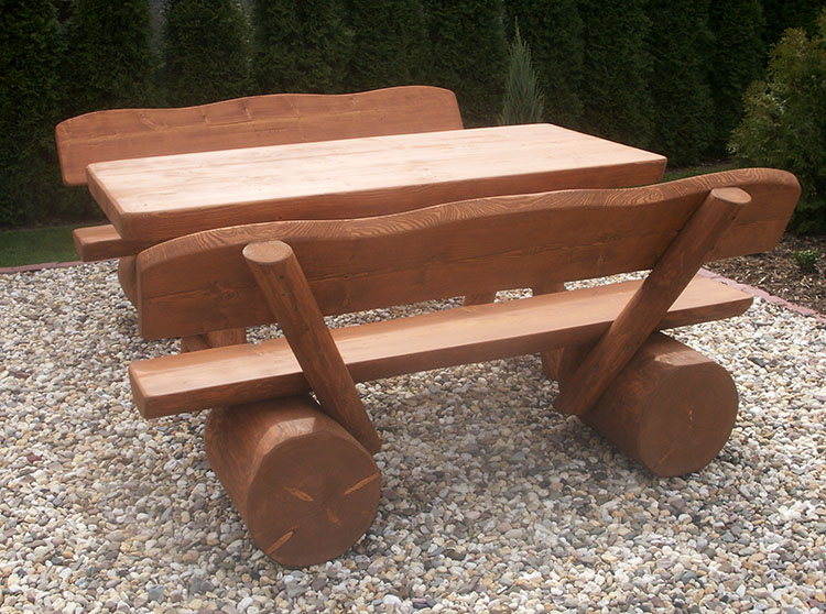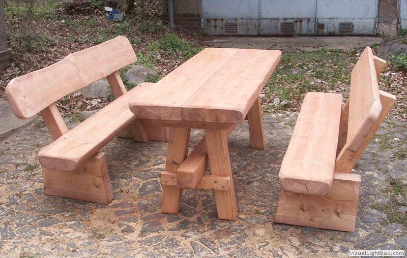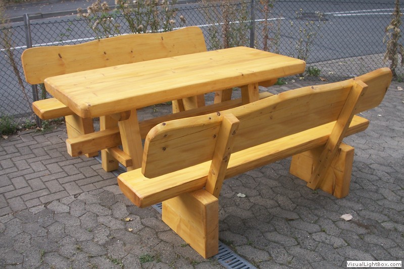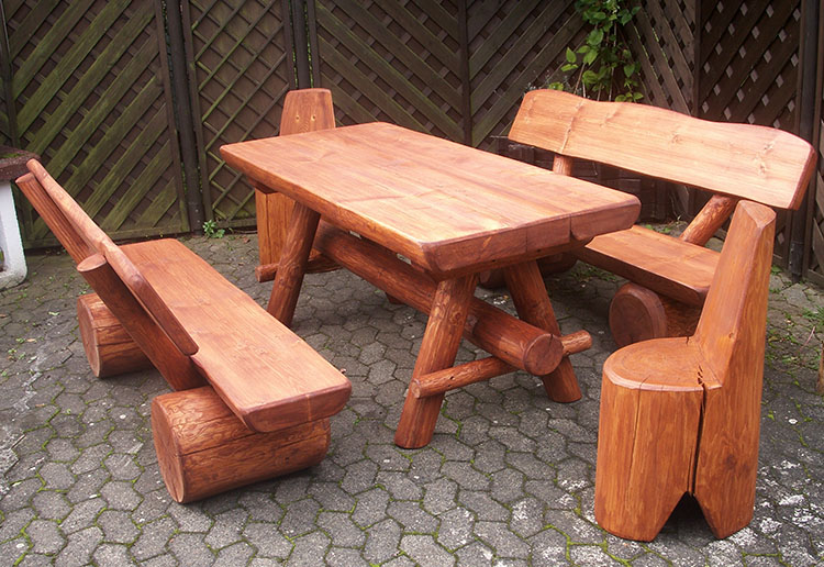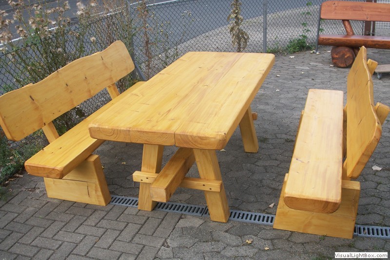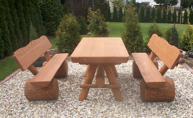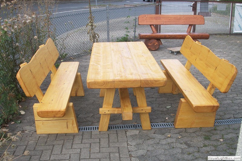 Die gesamte Garnitur wird mit einer Bläue - und Holzgrundierung behandelt. Danach wird sie mit einer Holzschutzlasur in der Farbe Ihrer Wahl gestrichen.