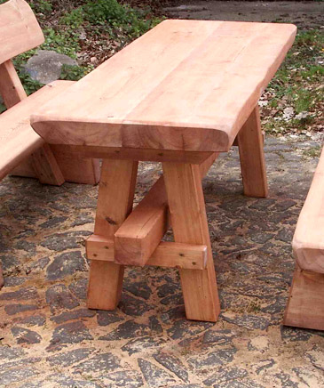 Die gesamte Garnitur wird mit einer Bläue - und Holzgrundierung behandelt. Danach wird sie mit einer Holzschutzlasur in der Farbe Ihrer Wahl gestrichen.